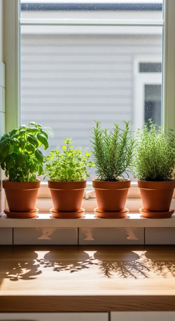 For tiny kitchens, try a hanging pocket planter or railing system. The small investment pays back quickly through better tasting food and reduced grocery trips.