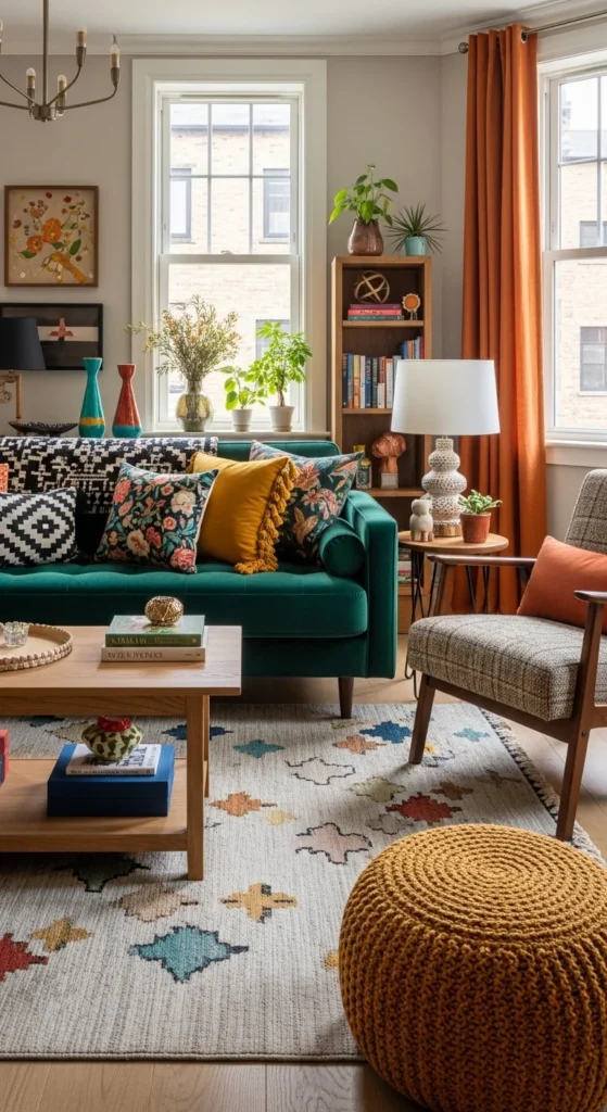 This space feels expressive and full of personality, with a mix of styles coming together naturally. Different furniture pieces, even from different eras, create a layered look. Bold colors and patterns bring energy into the room. Art, books, and collected decor pieces add character. A vintage rug or a unique coffee table can anchor the space. Each item contributes to a story, making the room feel personal.